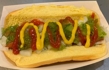 Mayo, Lettuce,Tomato, Onion, Jalapeños, Banana Peppers, Nacho Chips, Yellow and White Cheese