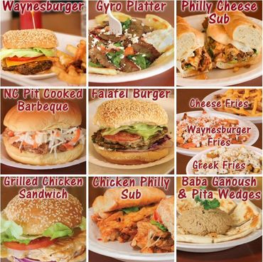 Special Greek Recipe Burger, Lettuce, Tomato, Onion, Waynesburger Sauce, Cheese